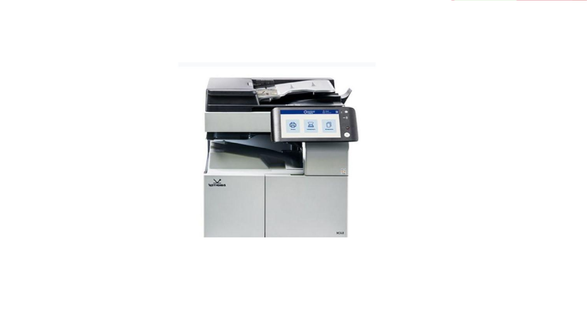| Плюсы: | Большой сенсорный экран, регулируемый по высоте. Печатает норм. Сканирует норм. |