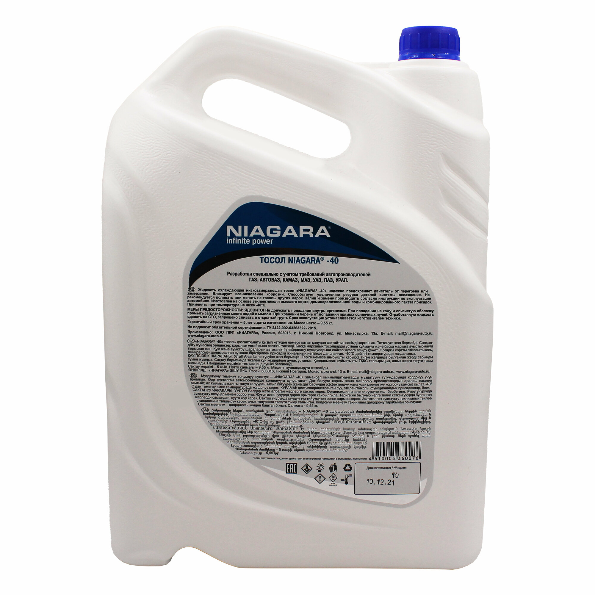Жидкость охлаждающая "Тосол" Ниагара А-40М 10 кг 001003000012