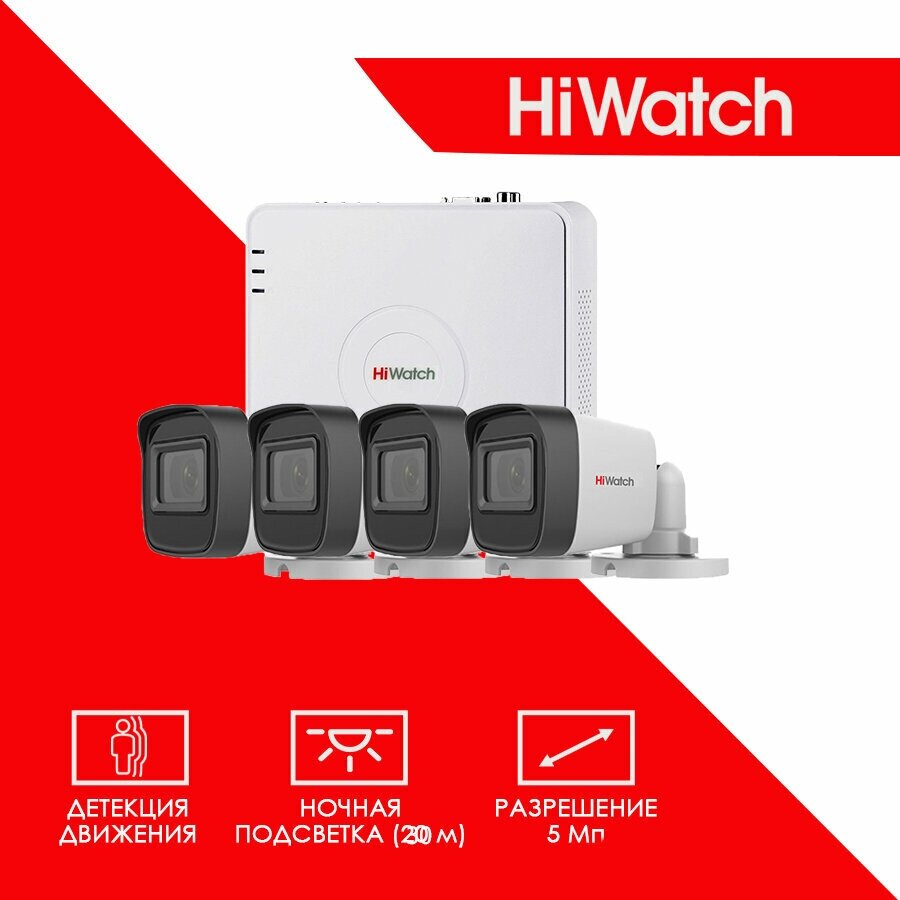 Уличный готовый комплект видеонаблюдения Hiwatch HD-TVI на 4 камеры 5MP интересное: