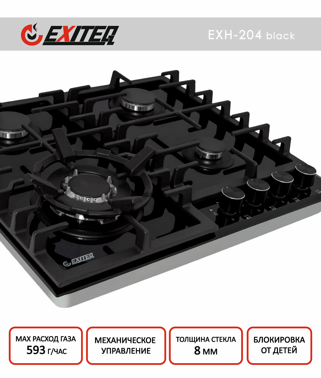 Встраиваемая газовая варочная панель Exiteq EXH-204 black интересное:
