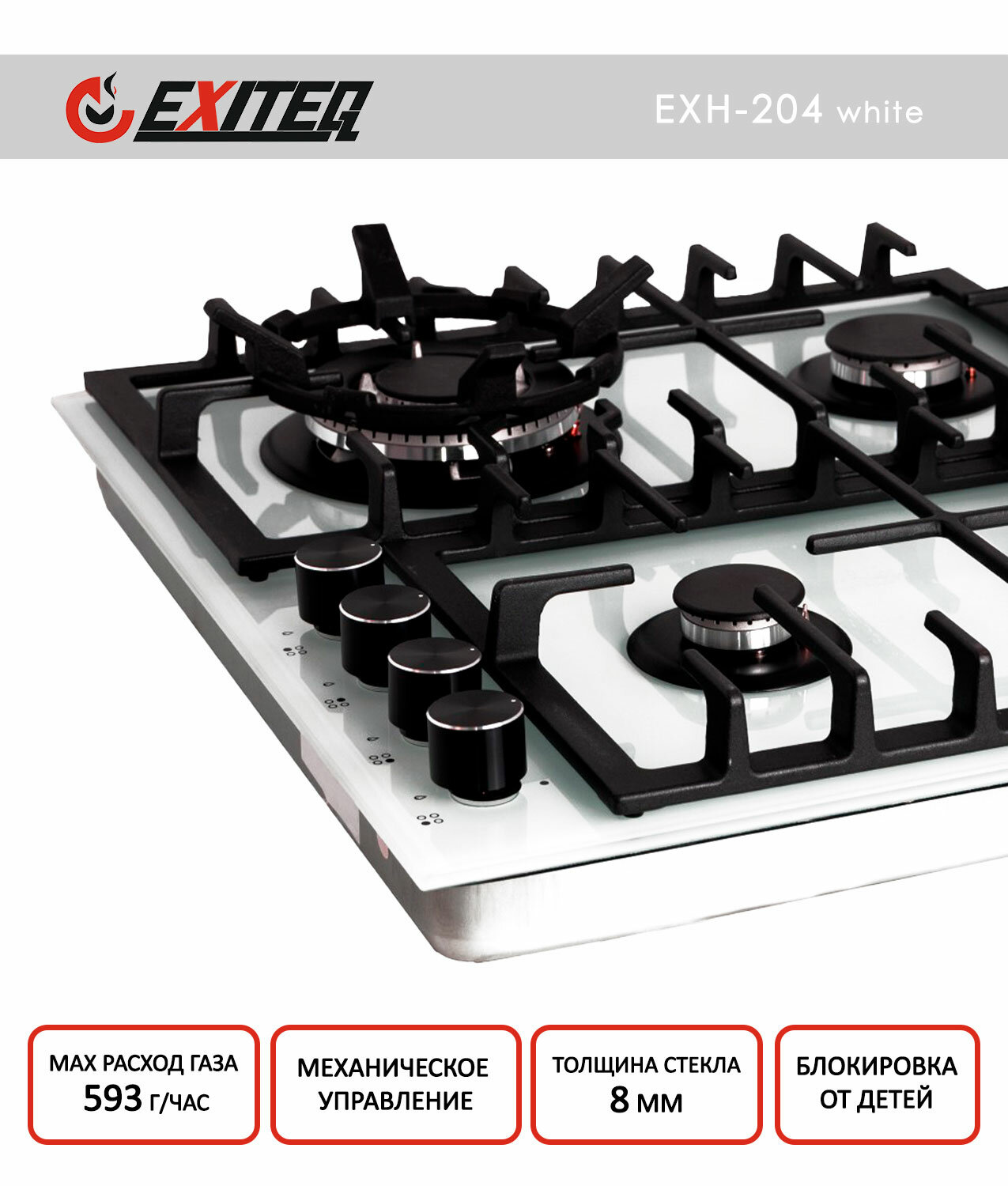 Встраиваемая газовая варочная панель Exiteq EXH-204 white интересное: