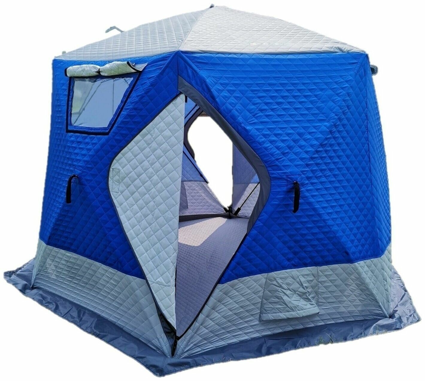 Утепленная зимняя палатка шатер для рыбалки Terbo Mir Куб 2, шестисторонняя, 3 слоя, размеры 3х3х2,05 м, цвет сине-белый