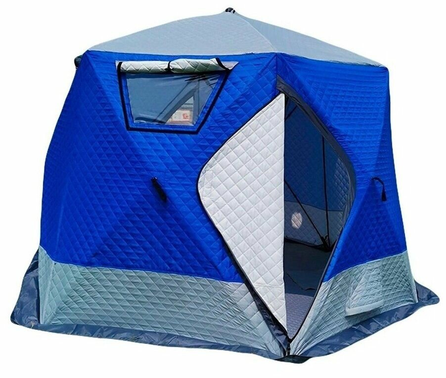 Утепленная зимняя палатка шатер для рыбалки Terbo Mir Куб 2, шатер шестисторонный, 3 слоя, размеры 3х3х2,05 м, цвет сине-белый