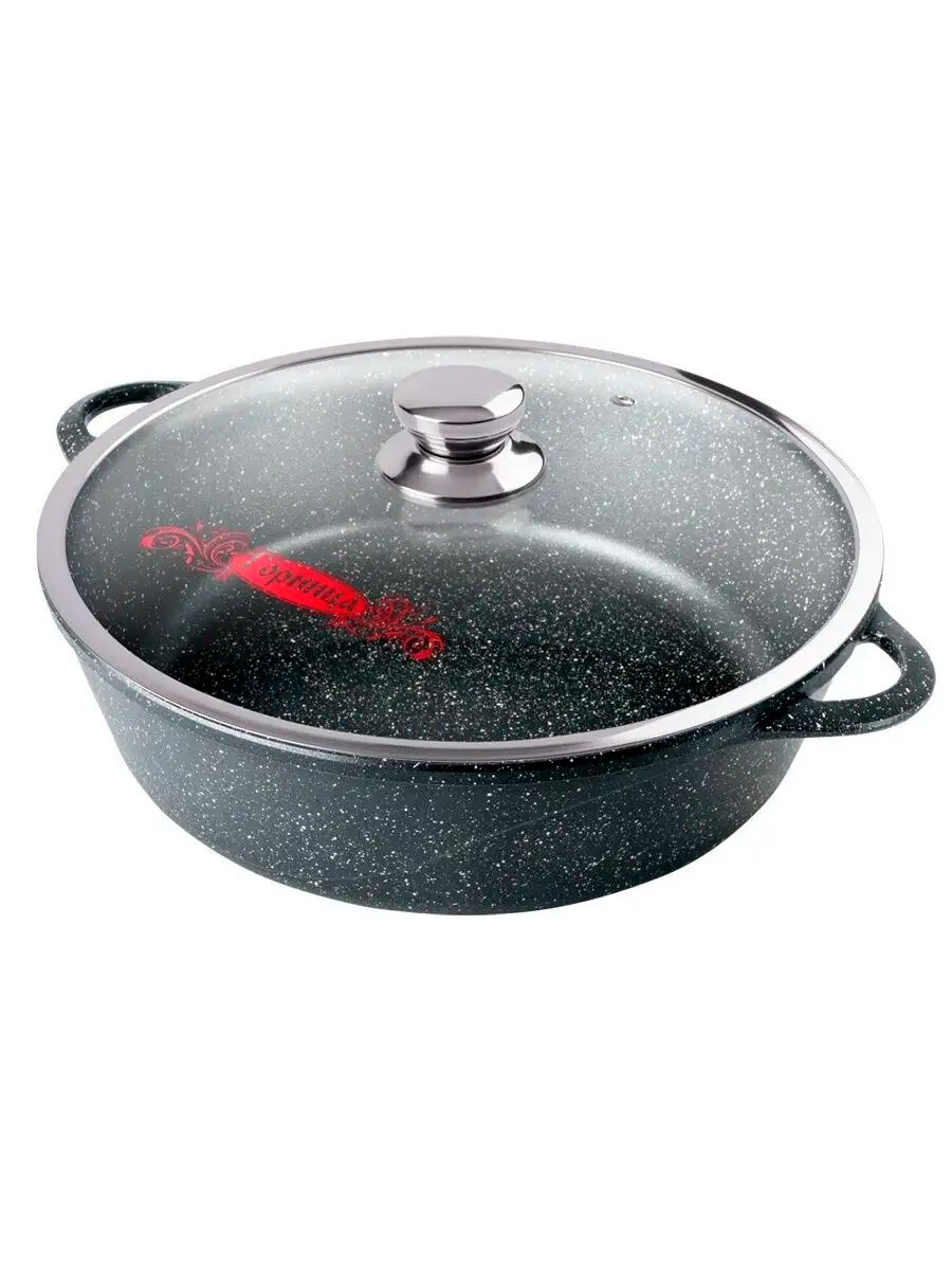 Жаровня антипригарная литая 28/7см 3.5 л со стеклянной крышкой Гранит ТМ Горница