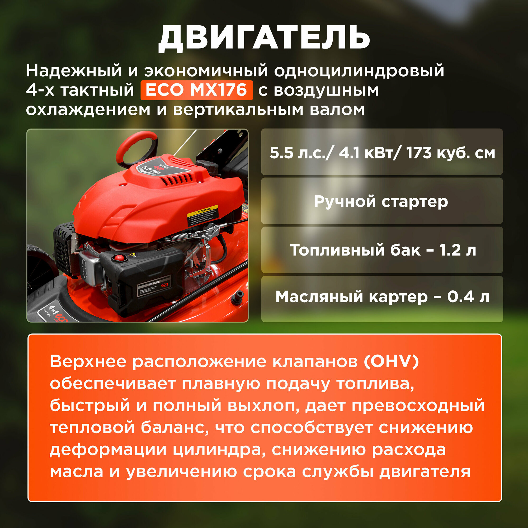 | Двигатель | бензиновый / 4х тактный |