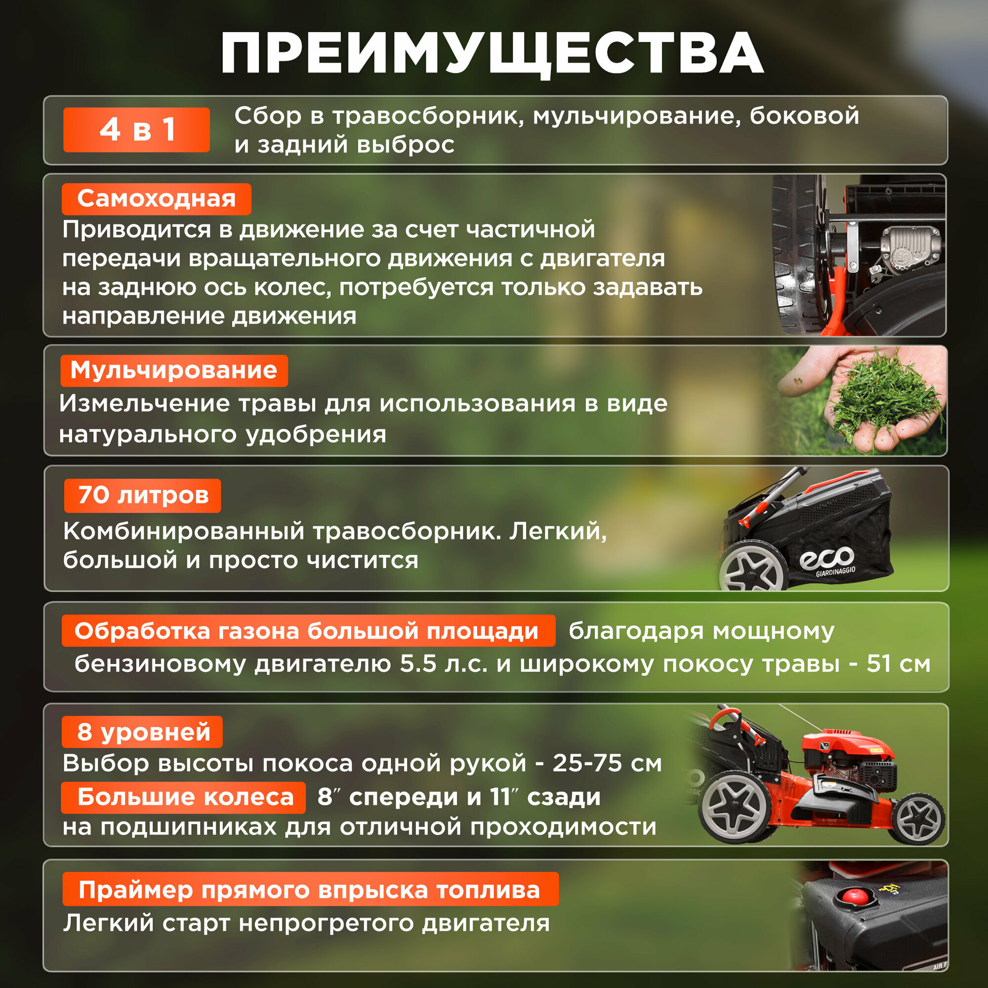 СохранитьГазонокосилка бензиновая ECO LG-734 самоходная интересное: