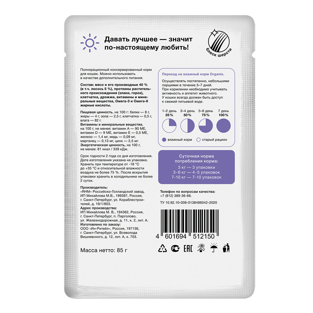 СохранитьOrganix паучи для стерилизованных кошек с лососем в соусе - 85 г x 25 шт интересное: