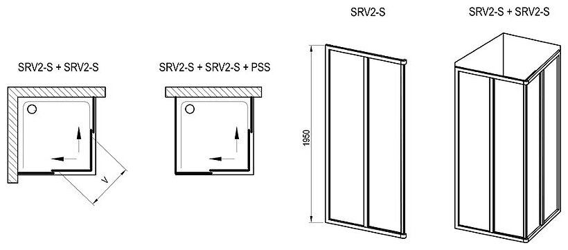 Душевая дверь Ravak Supernova SRV2-100 195 S 14VA03O2Z1 профиль Черный стекло Transparent