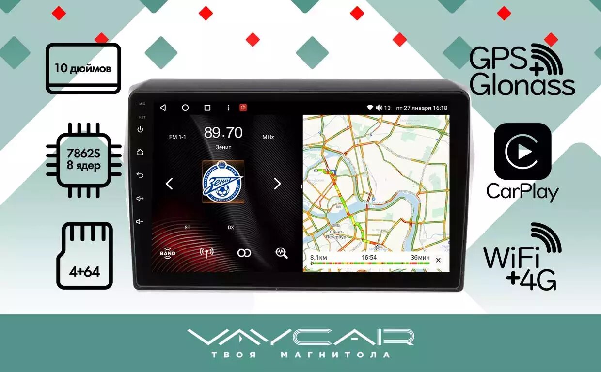 Магнитола Vaycar 10V2 для VOLKSWAGEN Tiguan 2016+ (Андроид, 2+32, 8 ядер, WiFi, BT, 4G, GPS, QLED 10")