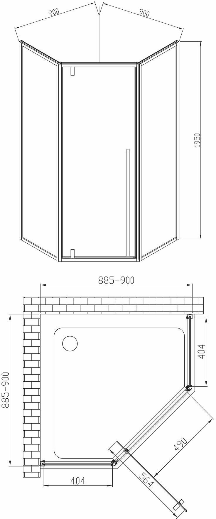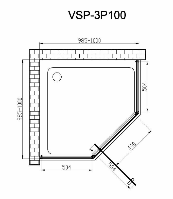 Душевой уголок Vincea Penta VSP-3P 100 x 100 см пятиугольный, дверь распашная, стекло прозрачное, черный, VSP-3P100CLB