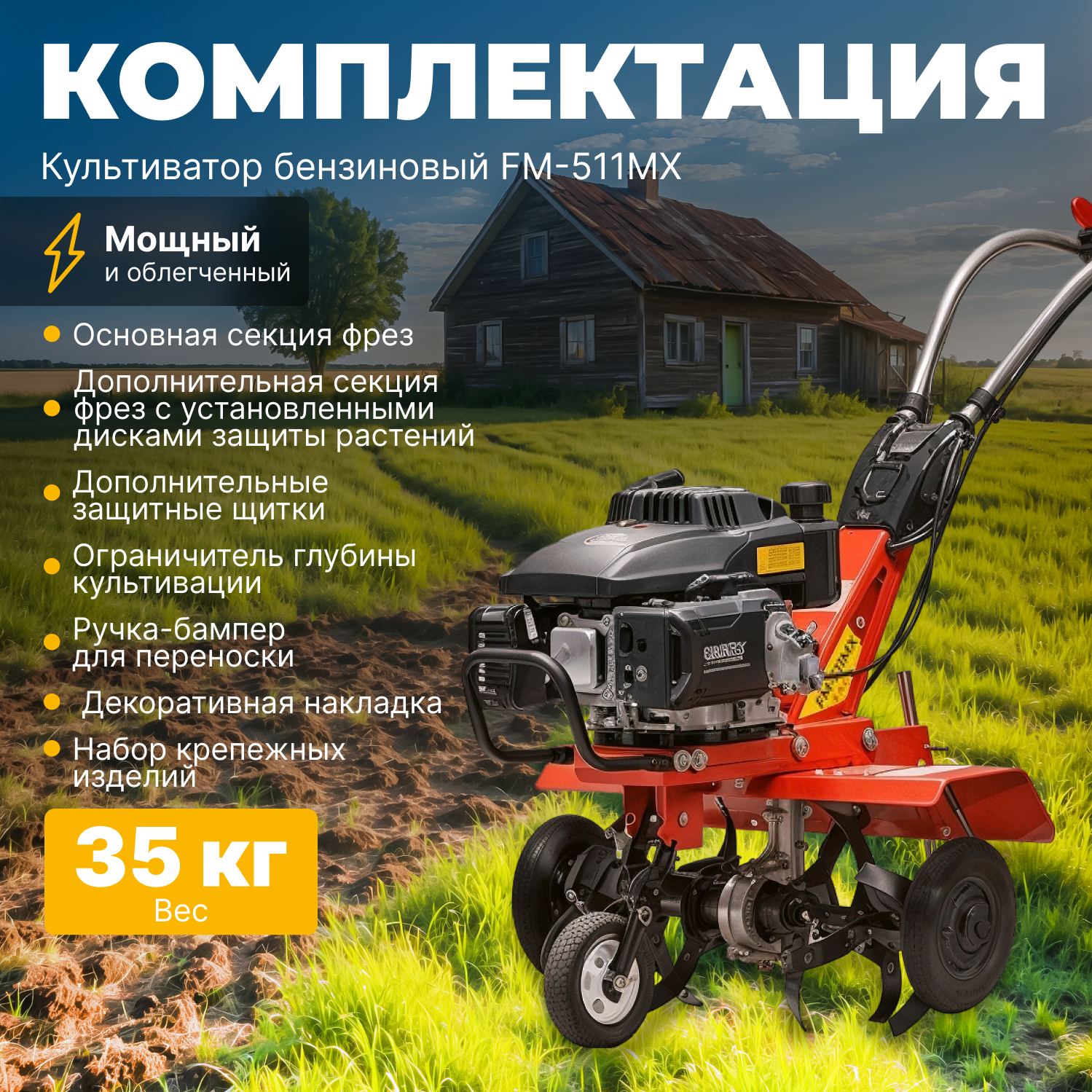 Бензиновый ручной культиватор FM-511MX для обработки почвы садовых работ на даче инструмент мотокультиватор