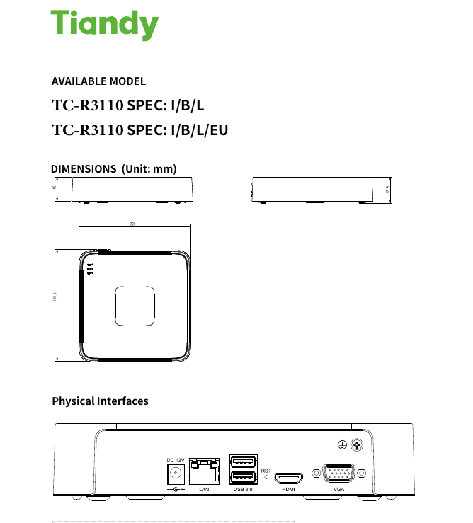 Видеорегистратор Tiandy TC-R3110 Spec: I/B/L/Eu TC-R3110 Spec: I/b/l/eu .