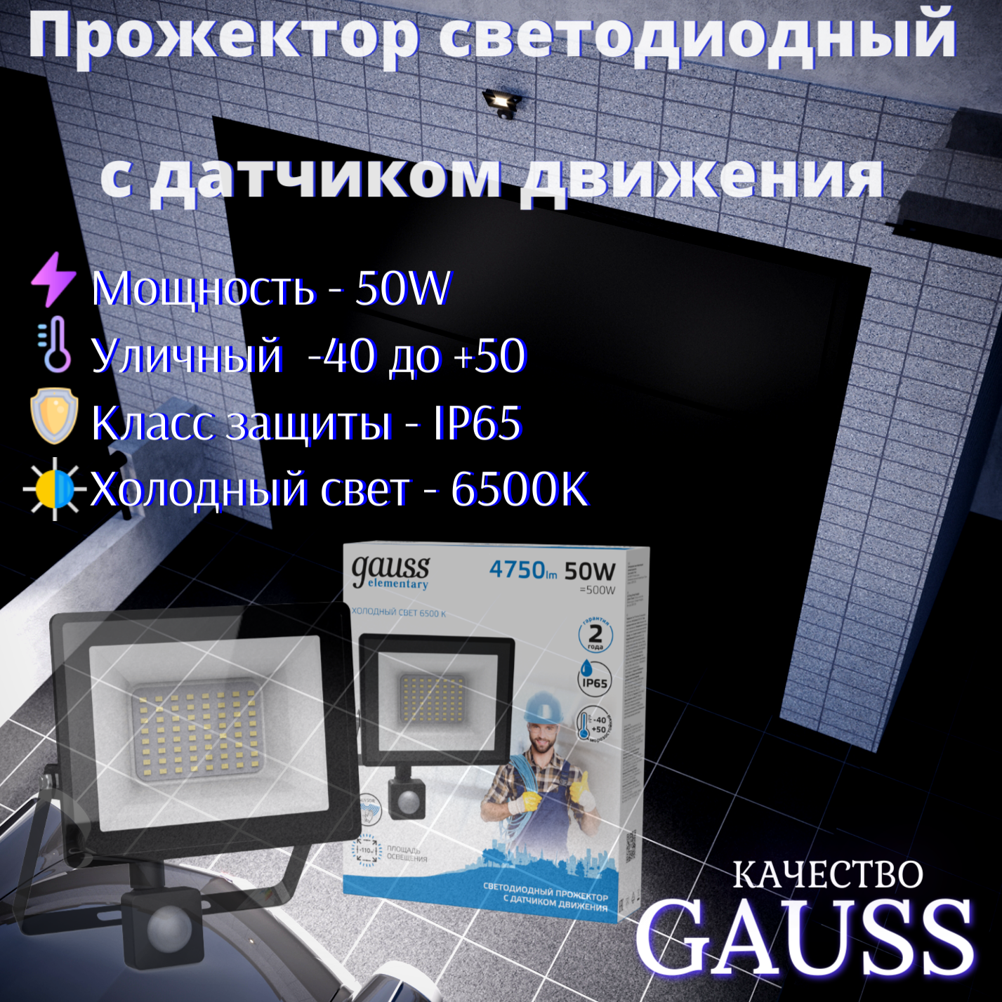 Ниже Вы можете прочитать отзывы на Gauss Прожектор Elementary-S 50W 3450lm 6500К 175-265V IP65 черный с датчиком движения LED, ознакомится с подробными характеристиками, посмотреть интересные обзоры и фотографии на Gauss Прожектор Elementary-S 50W 3450lm 6500К 175-265V IP65 черный с датчиком движения LED.