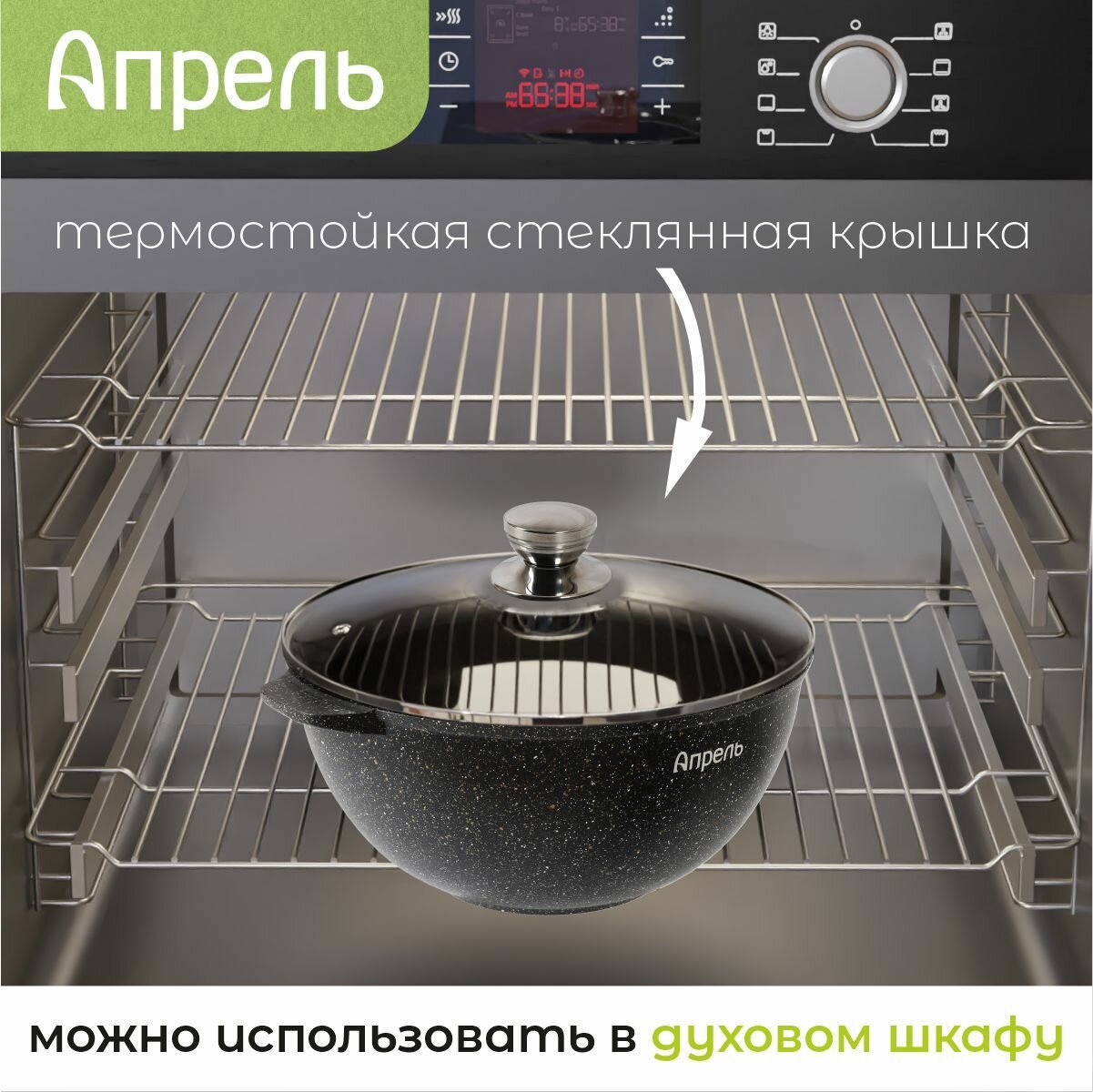 Казан "Апрель" 4,5л Гранит с антипригарным покрытием с крышкой, можно мыть в посудомоечной машине