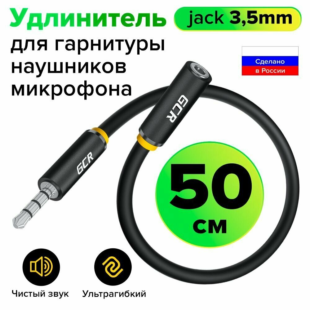 Удлинитель кабеля для гарнитуры aux Jack 3.5мм GCR для JBL SONY Sennheiser Panasonic стерео 50 см aux удлинитель для наушников