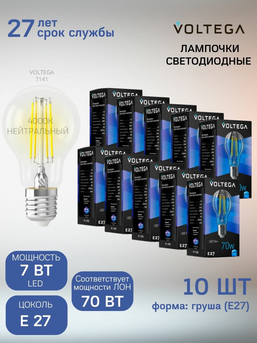Типы/Лампочки/Светодиодные Voltega Лампа светодиодная Voltega E27 7W 4000K прозрачная VG10-A60E27cold7W-F 7141