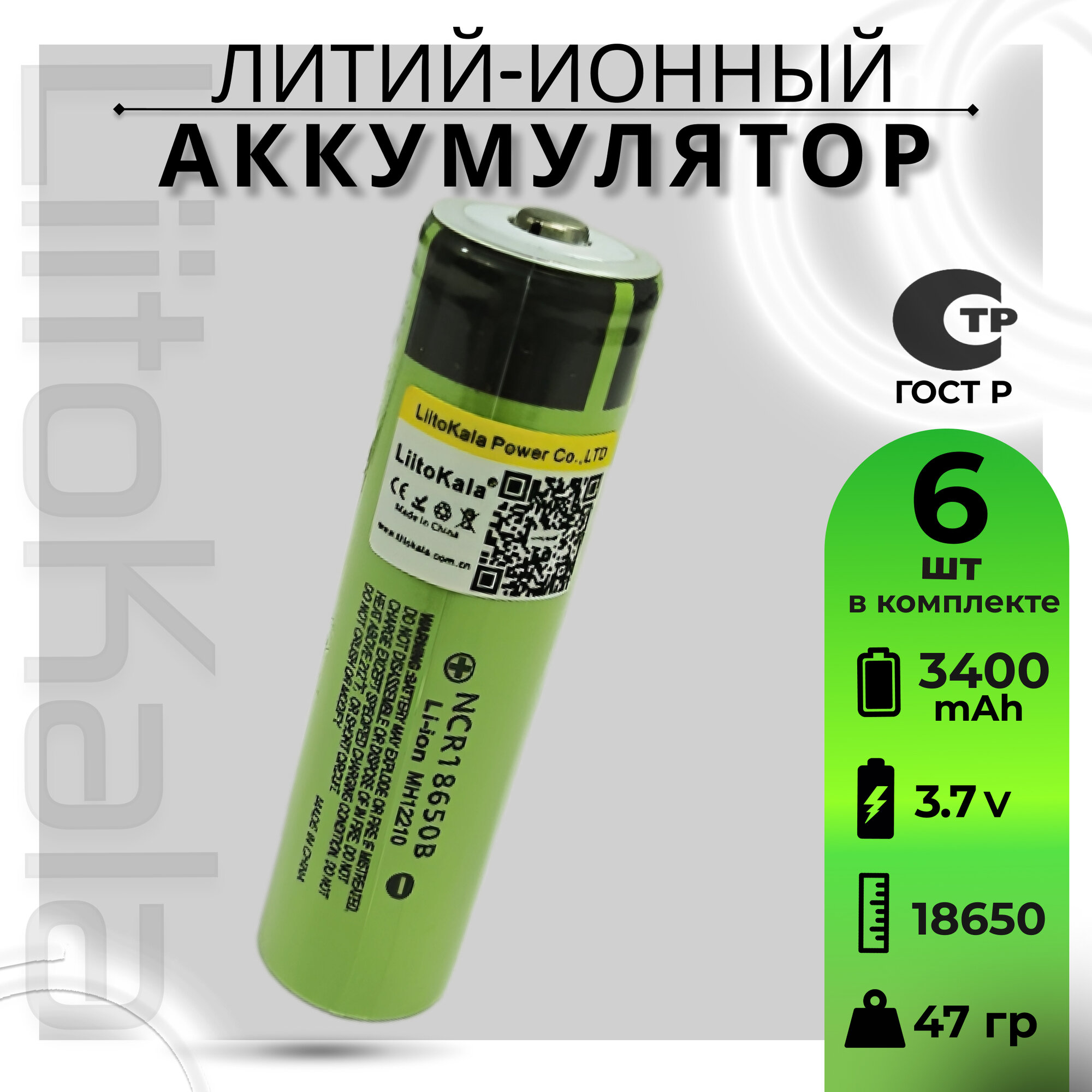 Аккумулятор Li-Ion 3400mAh 3.7 В LiitoKala NCR18650B выпуклый на плюсе, 6шт.