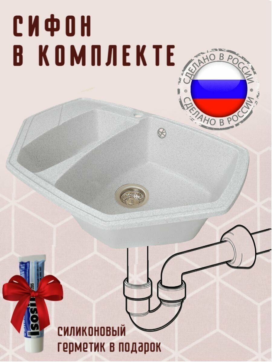 Купить Мойка для кухни МФК"белый", 74*49,5 см, врезная , Угловая,Две чаши , искусственный камень