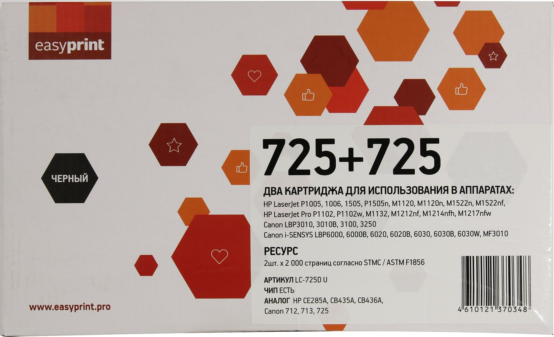 Купить Картридж EasyPrint LC-725D U Черный для Canon LBP3010/6000 HP LJ P1005/P1505/P1102/M1120/M1212/M1522 (двойная упаковка)