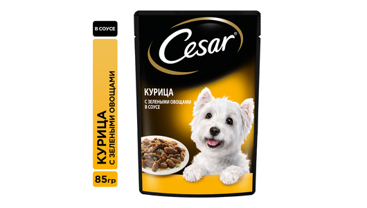 Cesar Паучи для взрослых собак с курицей и зелеными овощами в соусе 85г 10242611 0,085 кг 43486 (34 шт)