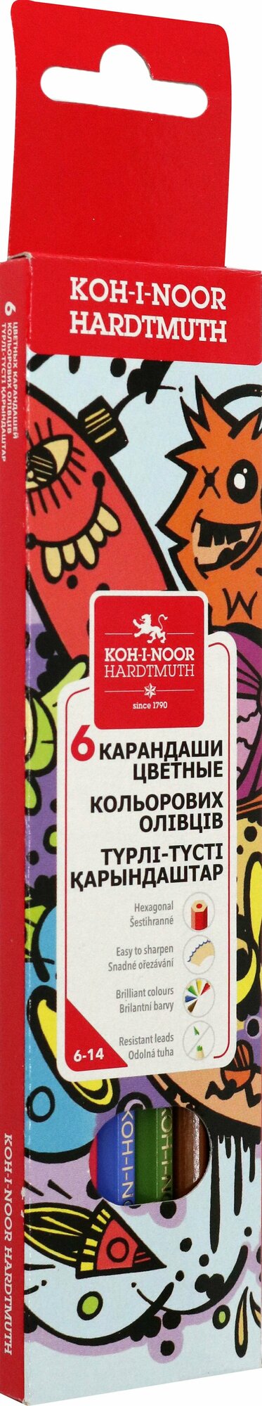 Карандаши цветные KOH-I-NOOR "Teenage", 6 цветов, заточенные, картон, европодвес (3551006042KSRU)