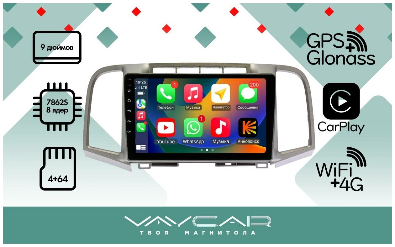 Купить Магнитола Vaycar 09VO4 для TOYOTA Venza 2008-2016 (Андроид, 4+64, 8 ядер, WiFi, BT, 4G, GPS, QLED 9")