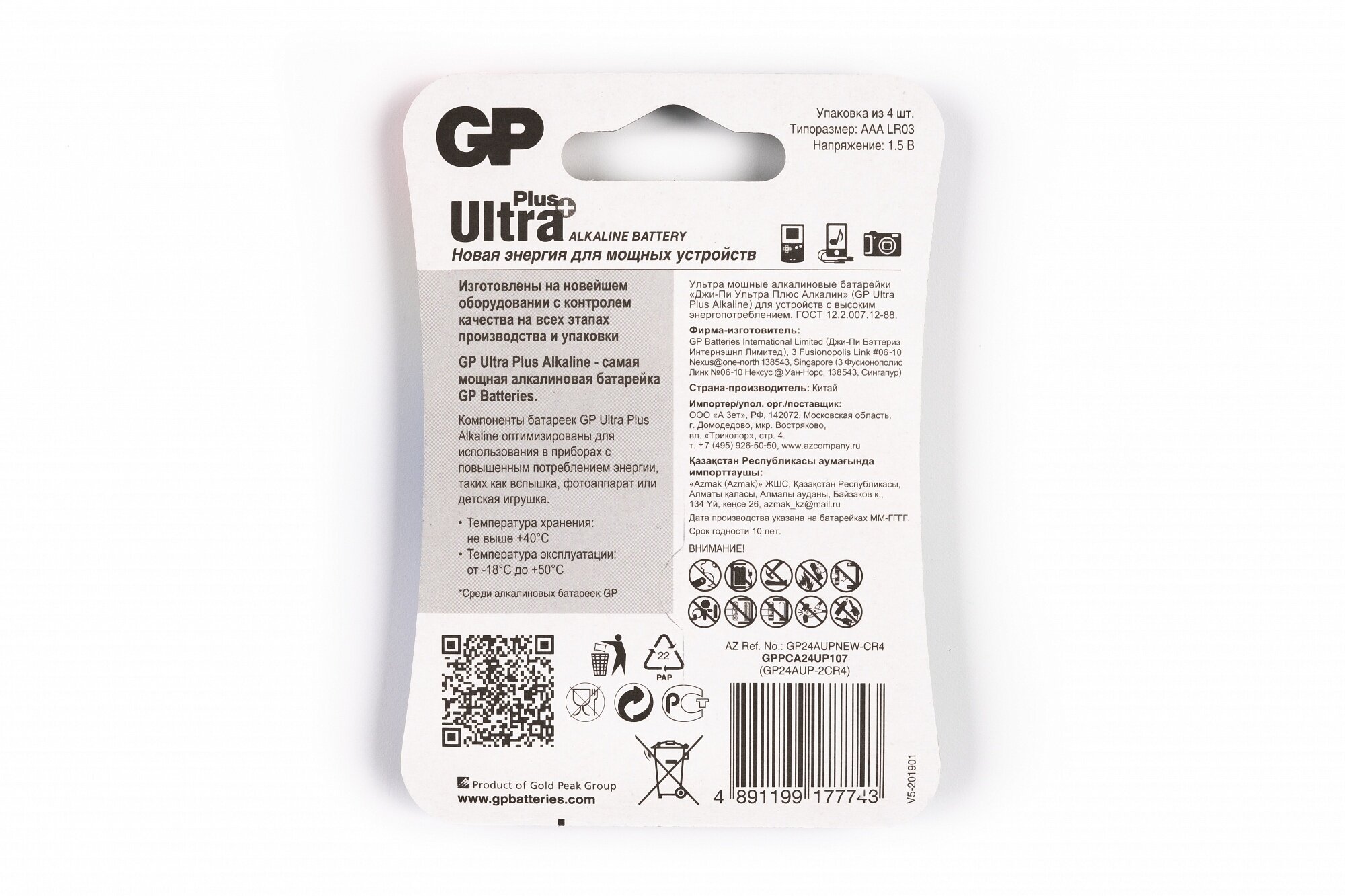 Батарейка GP Powerplus 24CEBRA-2S4, типоразмер ААА, 4 шт
