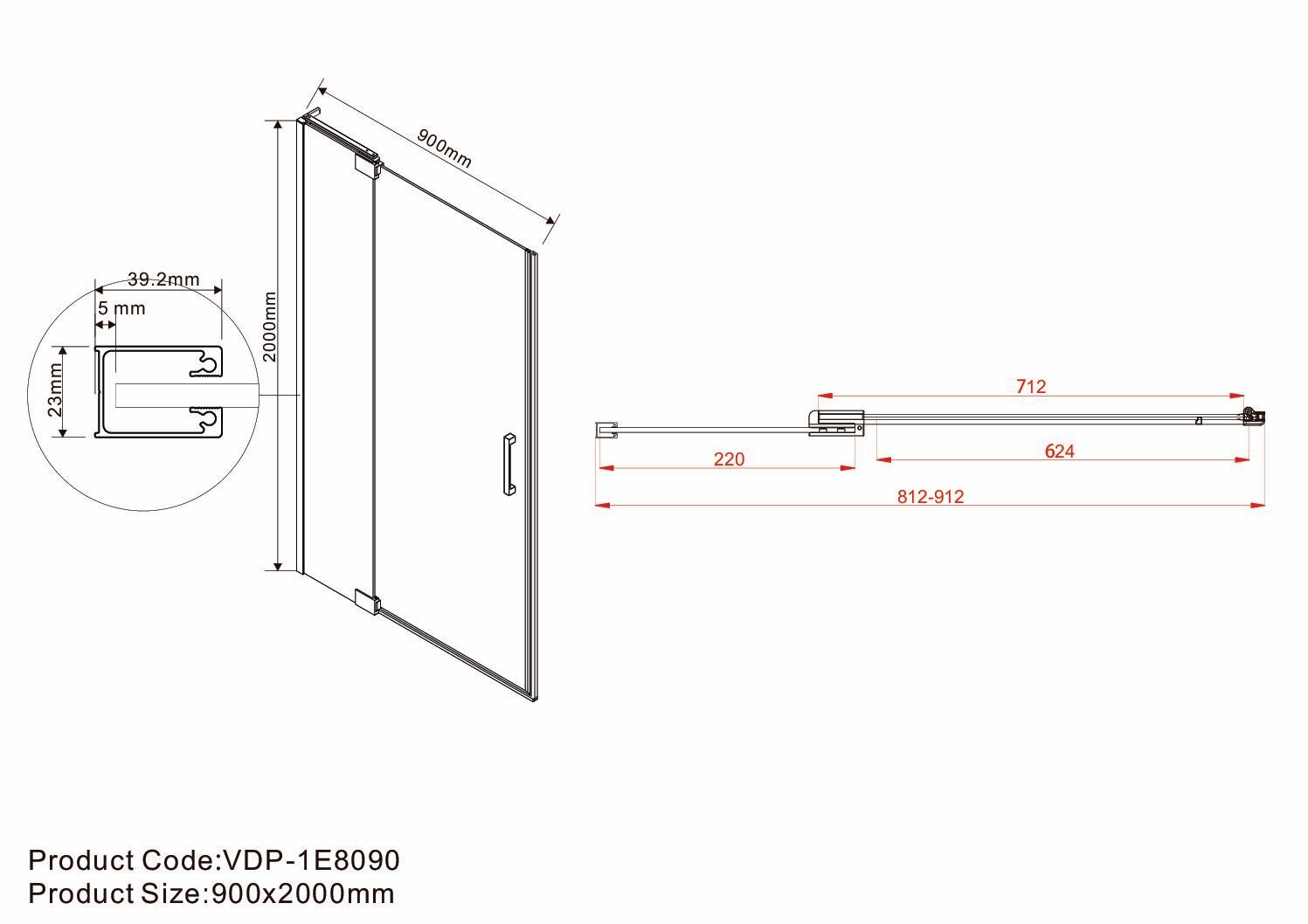 Душевая дверь Vincea Extra VDP-1E8090CL, 800/900, хром, стекло прозрачное