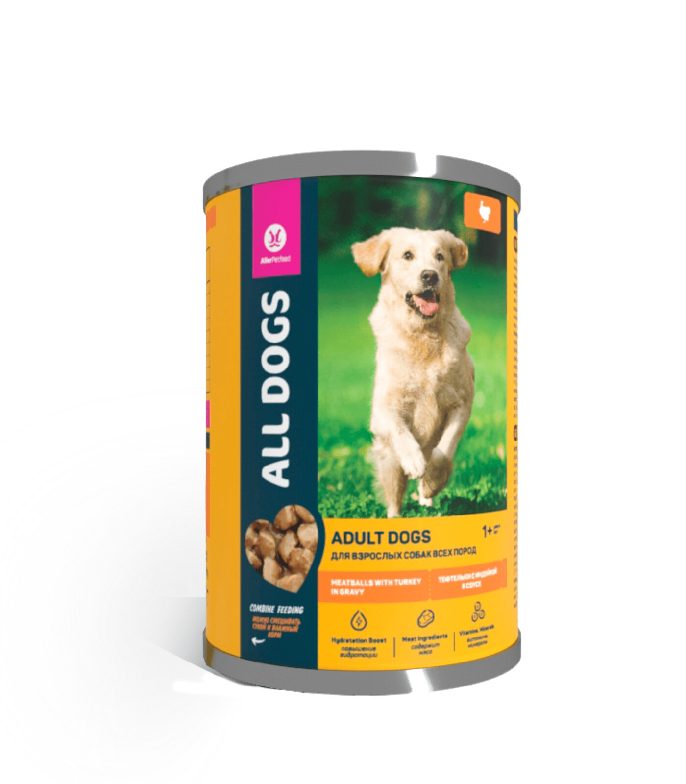 Влажный корм All dogs для собак, тефтельки с индейкой в соусе, банка,415 г