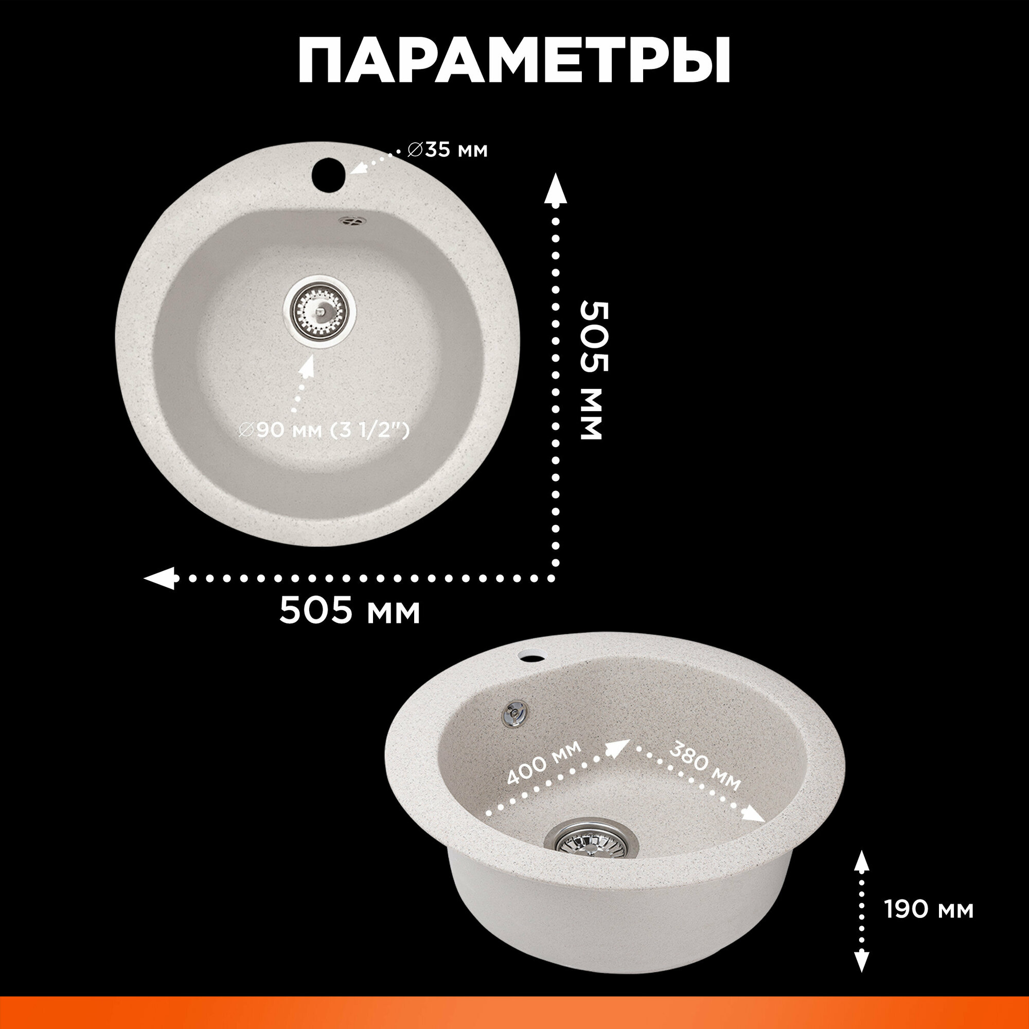 Мойка кухонная из искусственного камня GOLD песочный 505х505 mm, AV Engineering (AV510000GSNA)