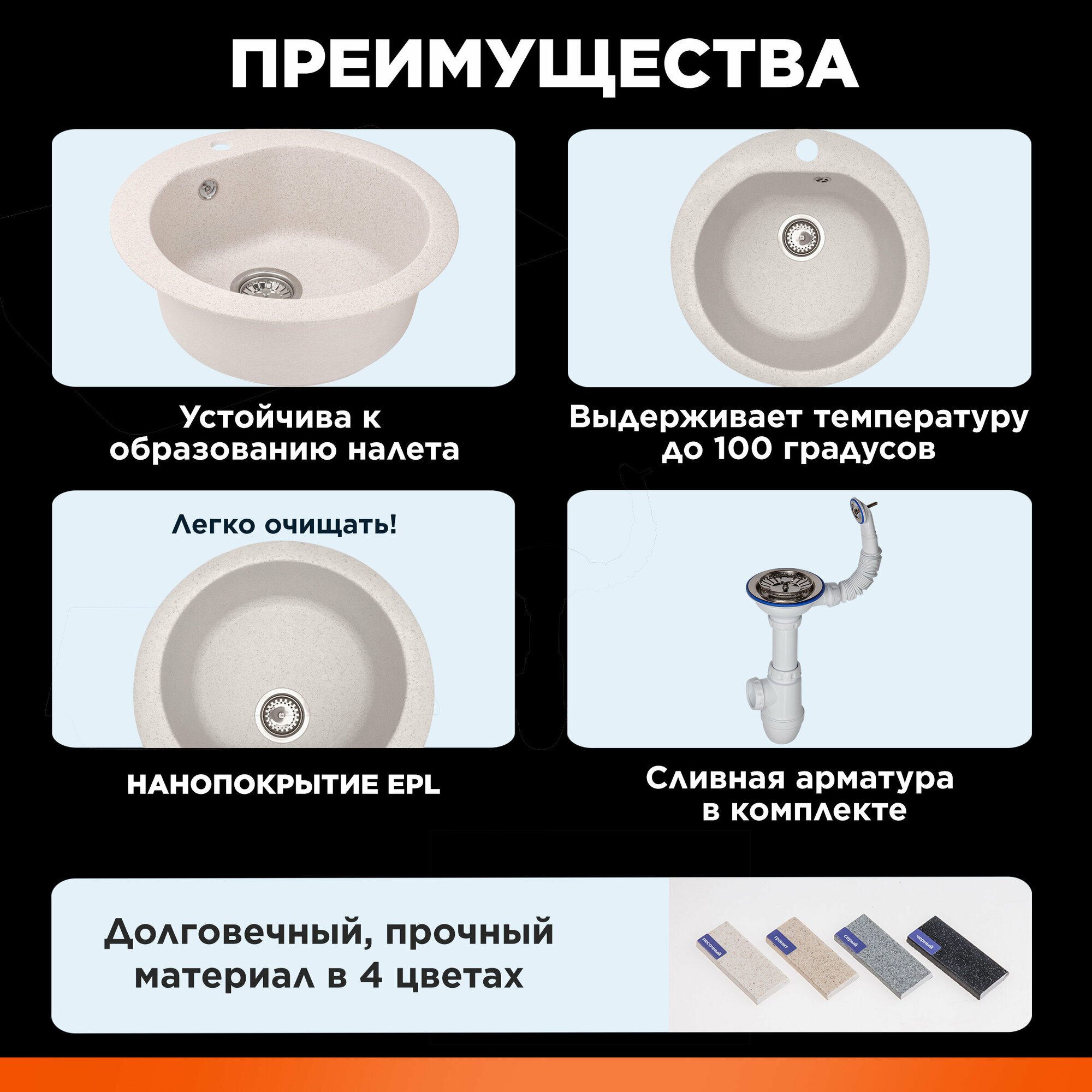 Мойка для кухни каменная врезная черная круглая AV ENGINEERING Richi (AV510510RBKA)