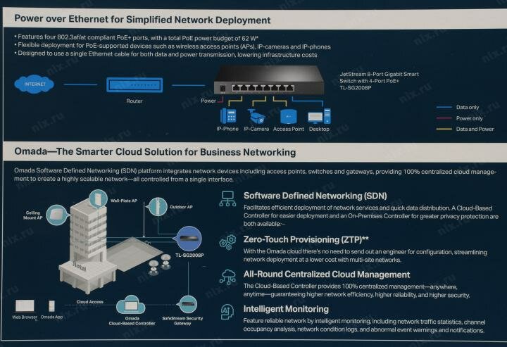 TP-Link SMB TP-Link TL-SG2008P JetStream 8-портовый гигабитный Smart коммутатор с 4 портами PoE+