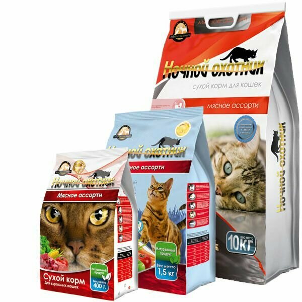 Сухой корм "Ночной охотник" для кошек "Мясное ассорти" 400 гр. пакет