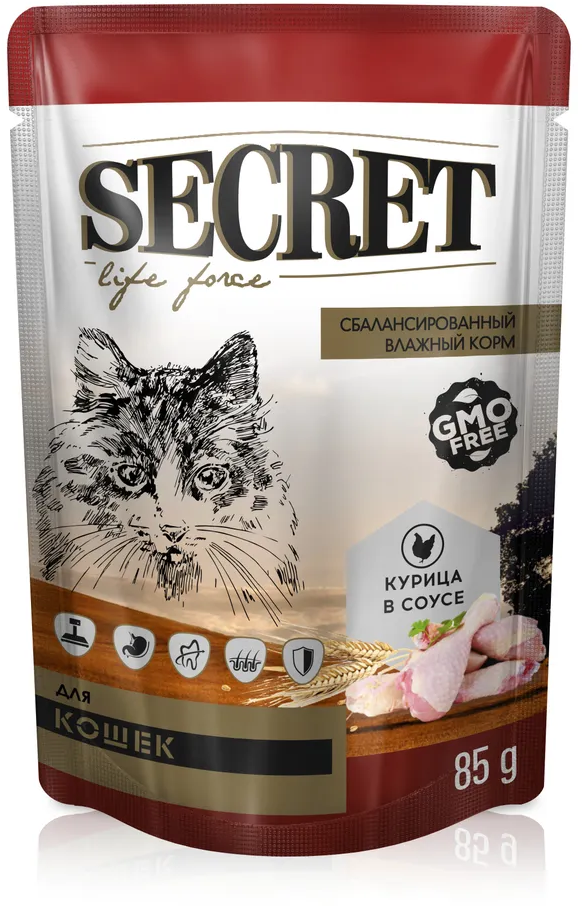 Корм для кошек влажный Secret с курицей в соусе паучи 85г x 24шт интересное: