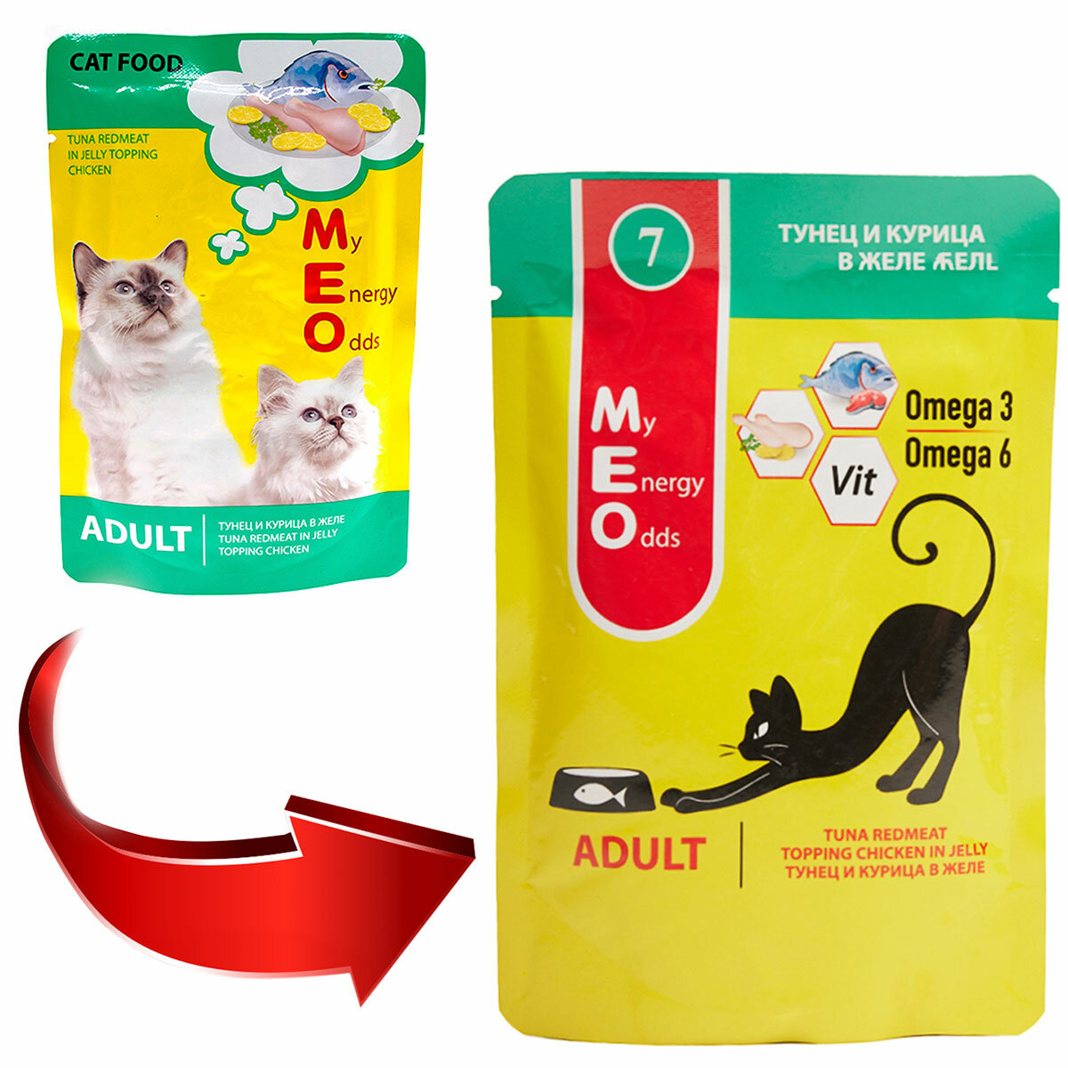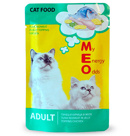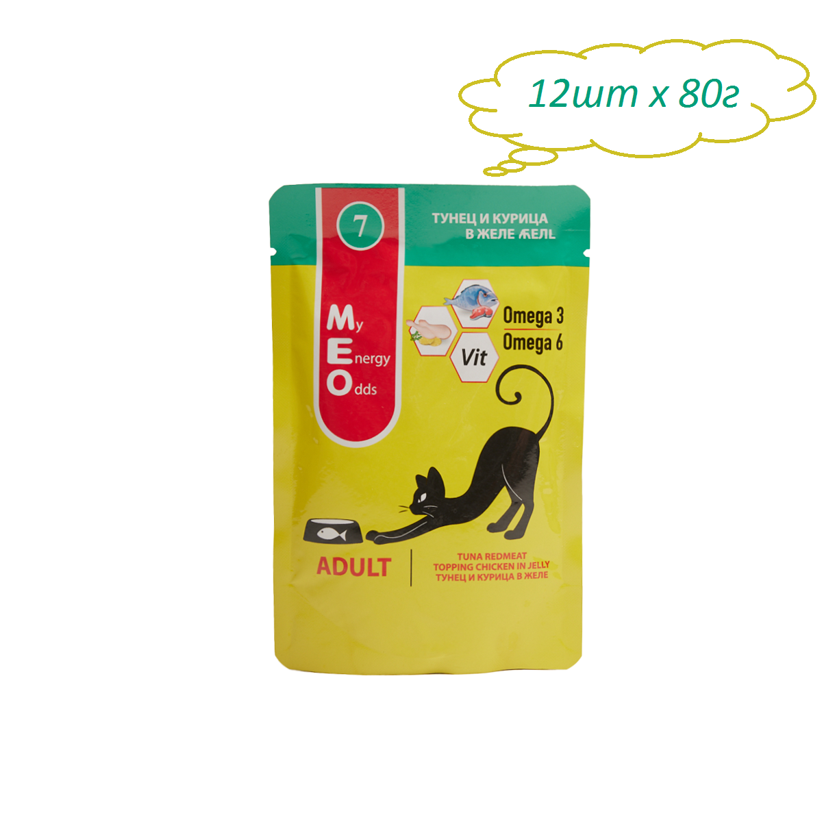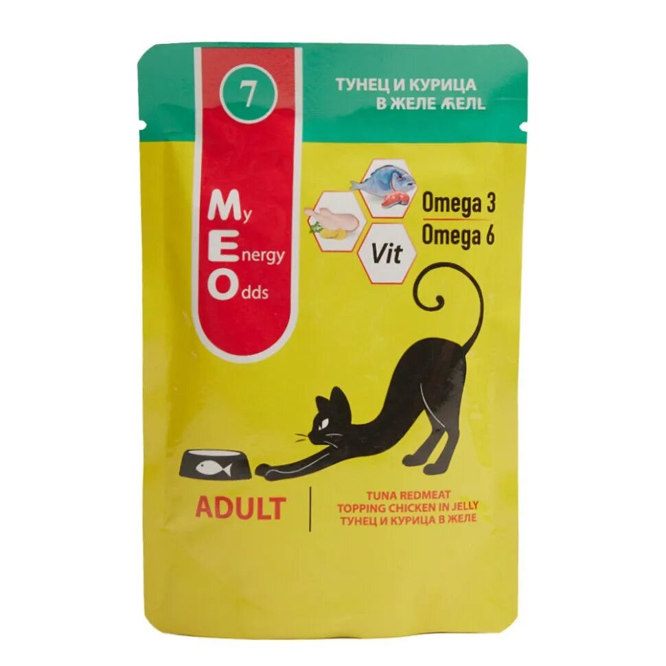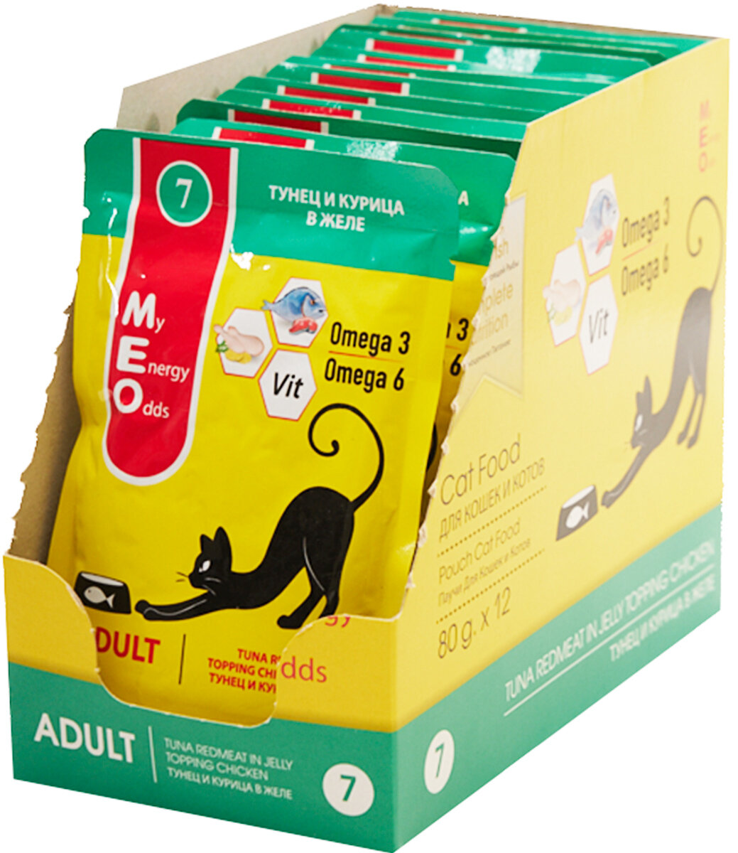 Влажный корм для взрослых кошек Me-O Adult №7 Тунец и Курица в желе паучи 80г х 12 шт.