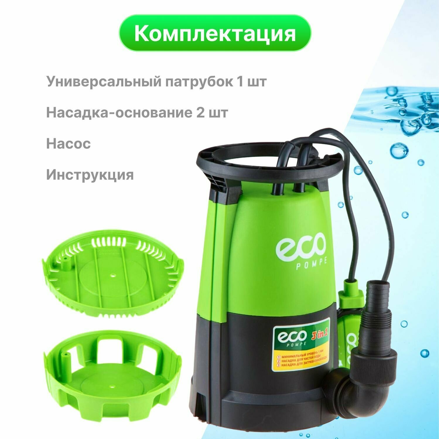 Насос погружной 3-в-1 Eco DP-606, 600 Вт, 11000 л/ч, 5.8 м
