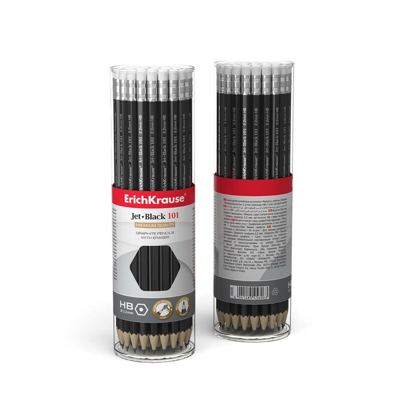 Карандаш чернографитный с ластиком Erich Krause Jet Black 101 HB, грифель d 2.2 мм, шестигранный, из отборной древесины, в тубусе, 42 штуки интересное: