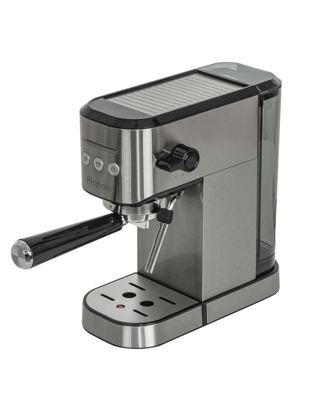 Кофеварка рожковая Pioneer с капучинатором и двойным фильтром, съемный резервуар 1 л, приготовление 1 или 2 чашек, генерация пара, подогрев чашек, 1350 Вт