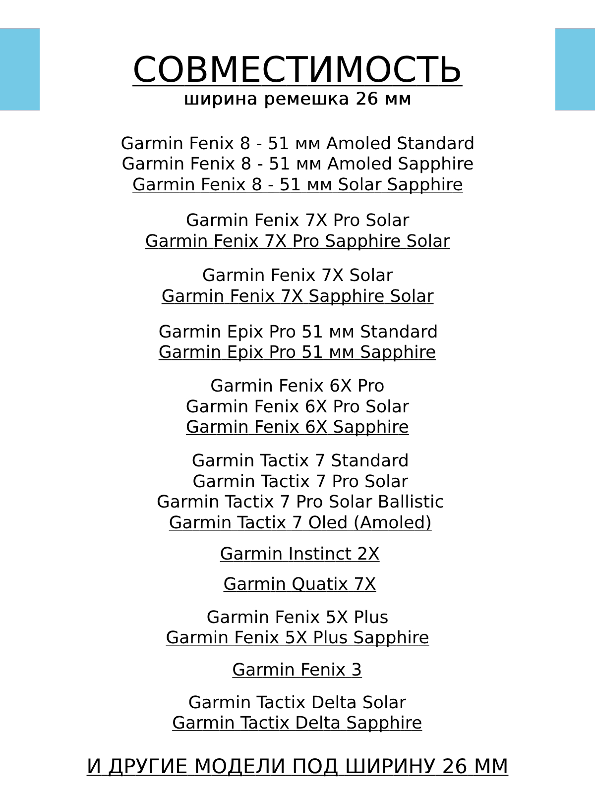 | Совместимые модели умных часов | Garmin Approach S60, Garmin Approach S62, Garmin Fenix 5, Garmin Fenix 5 Plus, Garmin Fenix 6, Garmin Fenix 6 Pro, Garmin Fenix 6 Pro Solar, Garmin Fenix 7 Solar, Garmin Forerunner 255, Garmin Forerunner 255 Music, Garmin Forerunner 745, Garmin Forerunner 935, Garmin Forerunner 945, Garmin Forerunner 955, Garmin Forerunner 955 Solar, Garmin Instinct, Garmin Instinct 2, Garmin Instinct 2 Solar, Garmin MARQ Adventurer, Garmin MARQ Athlete, Garmin MARQ Aviator, Garmin MARQ Commander, Garmin MARQ Driver, Garmin Quatix 5, Garmin Quatix 6 |