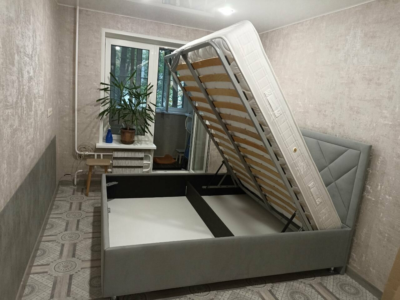 | Минусы: | Матрас крайне низкого качества. Прогибается под весом в 40 кг, на фото сидит ребёнок. Если садиться на край, то матрас сжимается в три раза и сидеть на нём неудобно, скатываешься. |