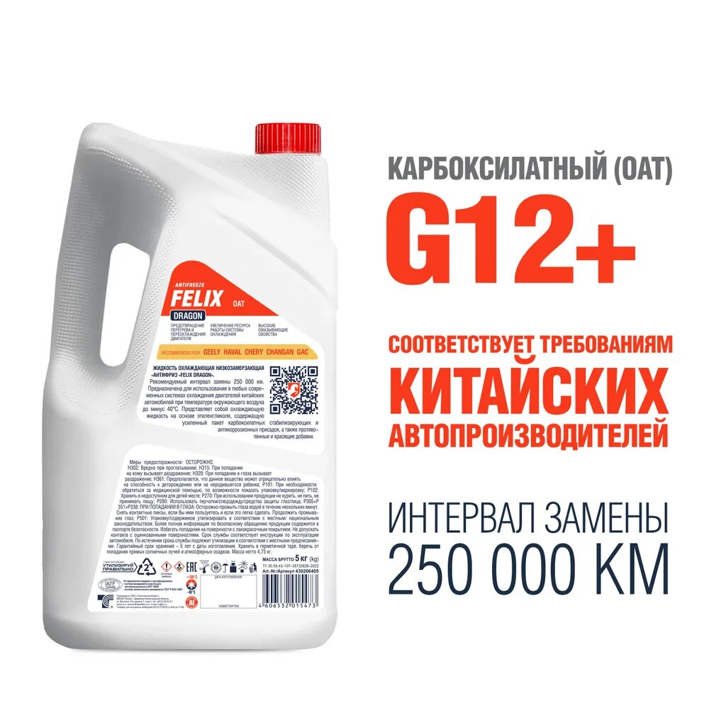Антифриз FELIX "DRAGON" для китайских авто, -45С, G12+, 1 кг, новинка!