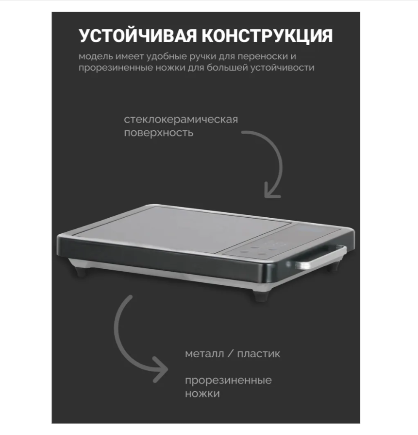 | Плюсы: | быстро нагревается..пришла без повреждений.удобно в переноске.есть по бокам ручки.стоит устойчиво на ножках не шатается. |