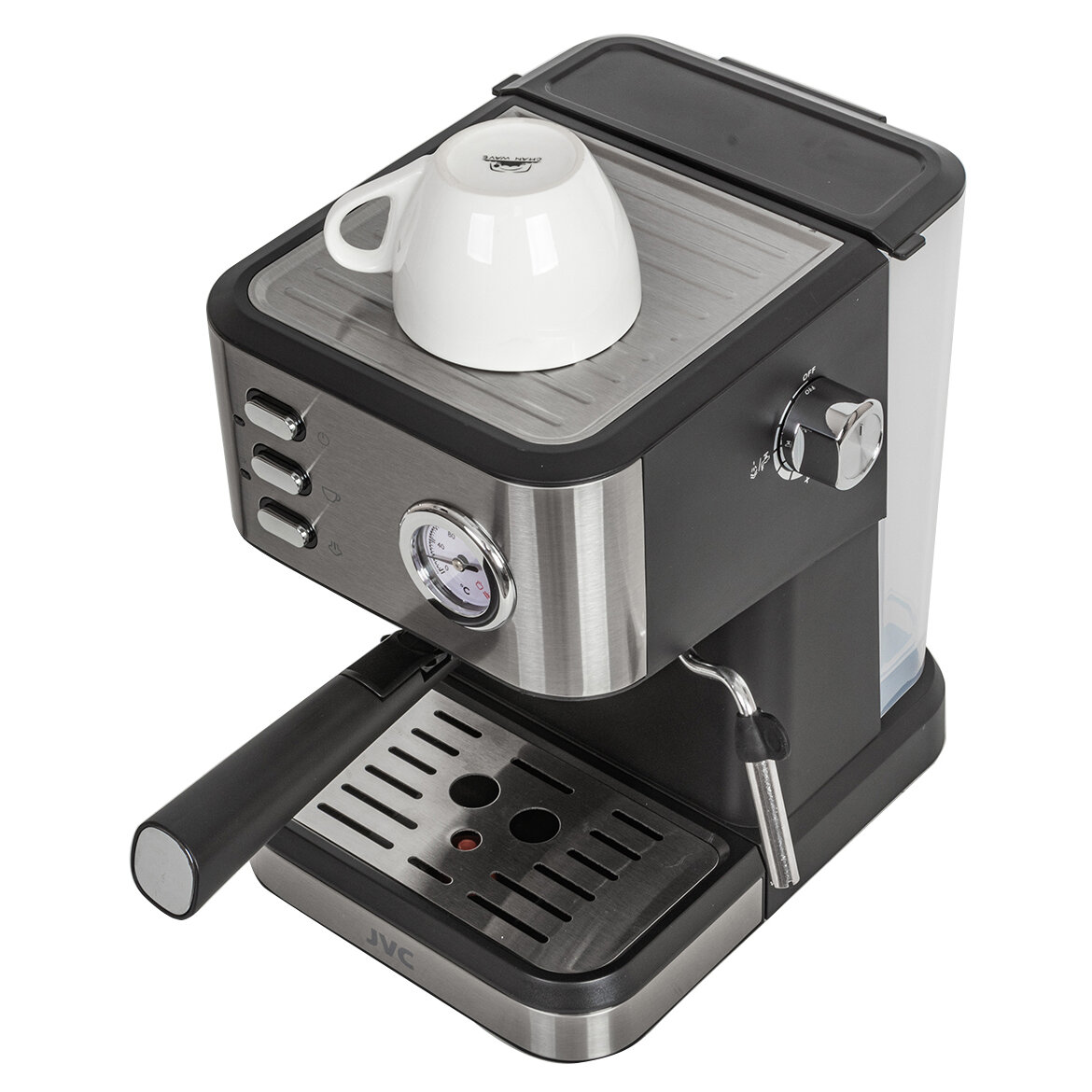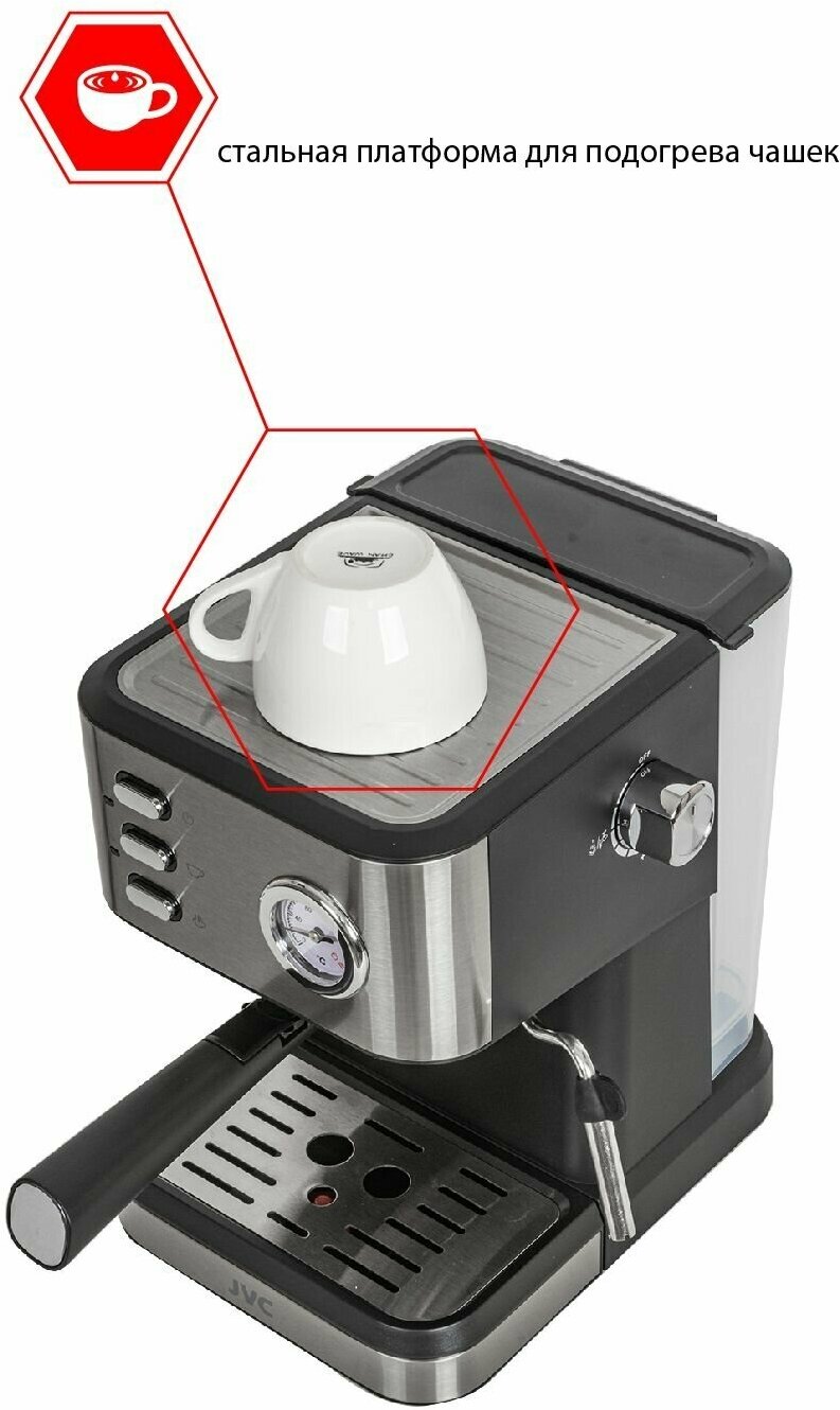 Кофеварка рожковая JVC со съемным резервуаром 1,5 л, двойным фильтром, подогревом чашек, 1050 Вт