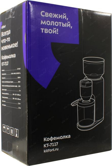 Кофемолка Kitfort КТ-7117, жернова, 150 Вт, емкость контейнера для молотого кофе - 120 г, количество степейней помола - 3, черный интересное: