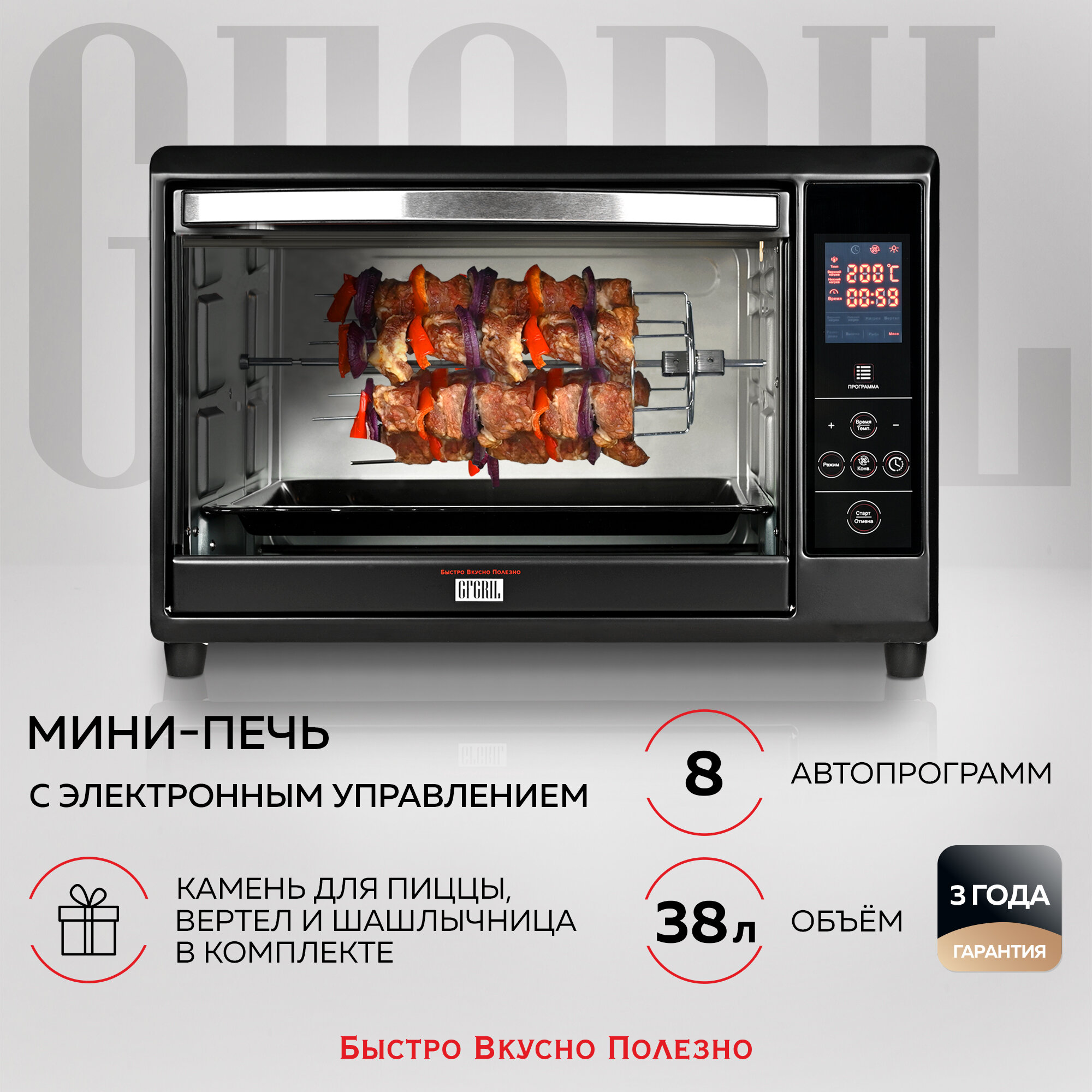 GFGRIL многофункциональная мини-печь GFOO-5, 4 автопрограммы, отложенный старт; духовой шкаф объемом 38 л