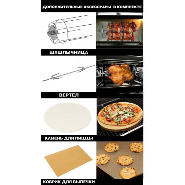 | Плюсы: | Очень Крутая, стильная и многофункциональная печь. Имеется в комплекте гриль, камень для пиццы, коврик для выпечки, насадка для шашлыка, противень для готовки. Привезли через день после заказа. |