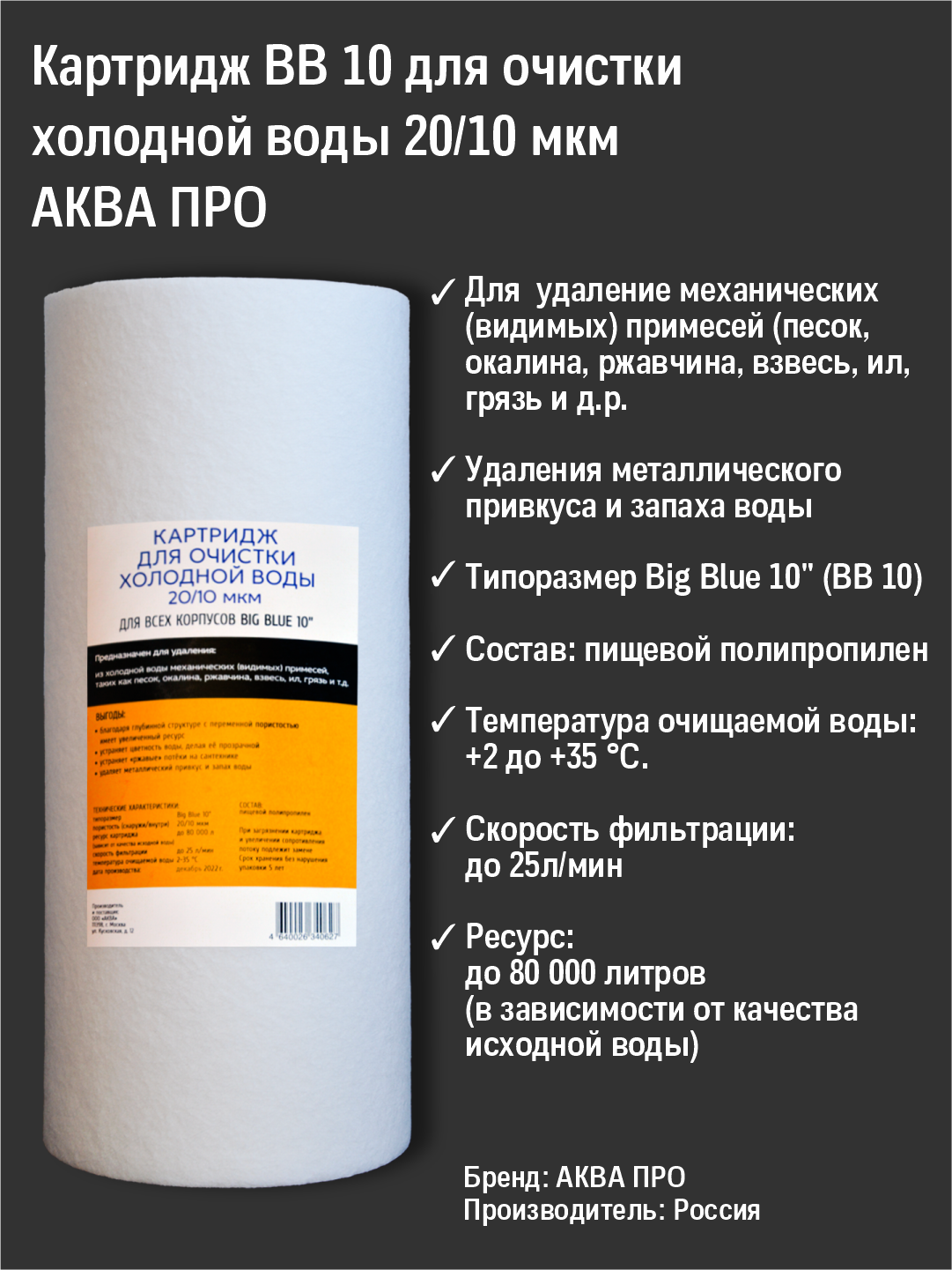 Картридж Аква Про 10ВВ для холодной воды 5 микрон 765