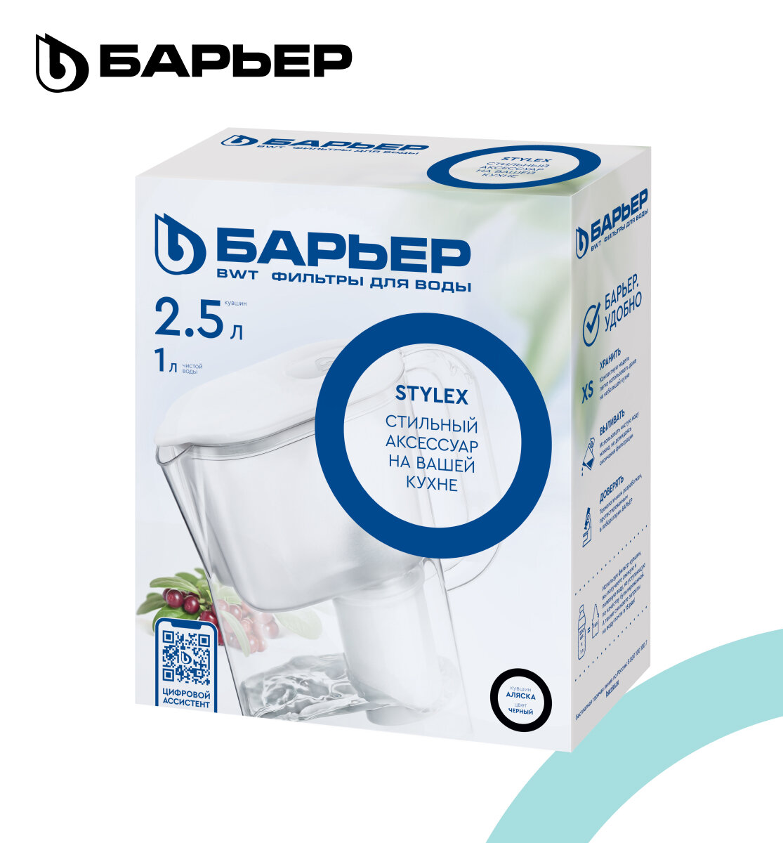Фильтр-кувшин для очистки воды барьер Аляска XS, серия StyleX, 2,5 л, цвет белый