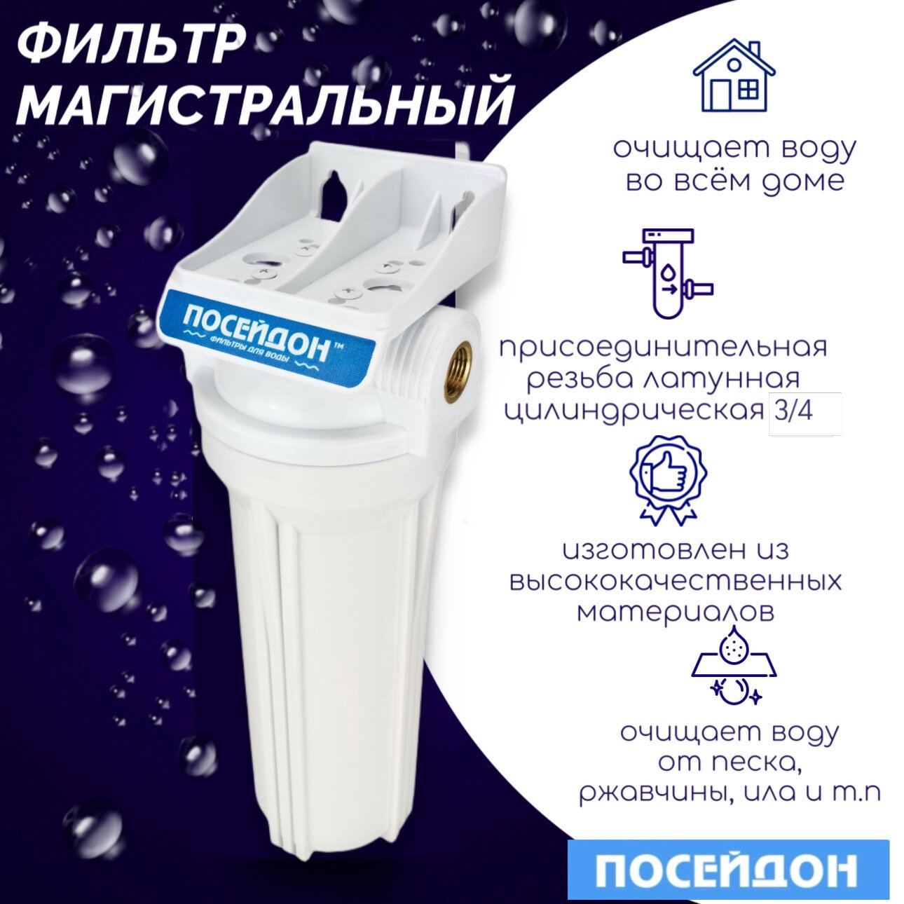 Ниже Вы можете прочитать отзывы на Фильтр для воды магистральный посейдон "ПОСЕЙДОН-1Р" белый 3/4" с картриджем ЭФГ 63/250 - 5 мкм. Магистральный фильтр Очищает воду во всем доме., ознакомится с подробными характеристиками, посмотреть интересные обзоры и фотографии на Фильтр для воды магистральный посейдон "ПОСЕЙДОН-1Р" белый 3/4" с картриджем ЭФГ 63/250 - 5 мкм. Магистральный фильтр Очищает воду во всем доме..