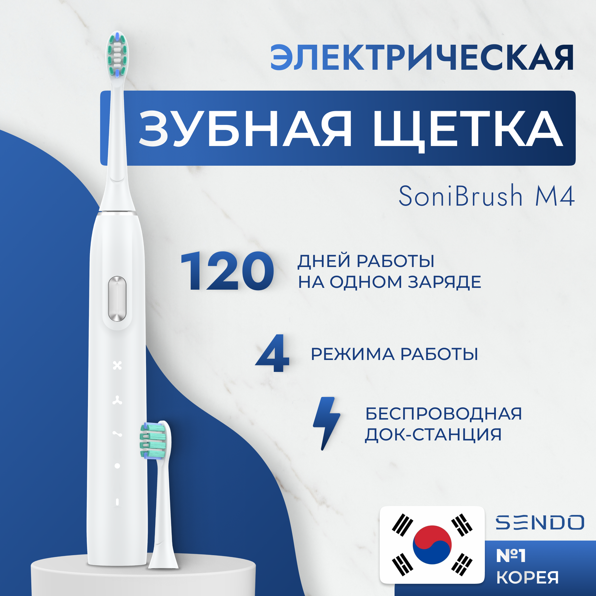 Купить SENDO Электрическая ультразвуковая зубная щетка sonibrush m4, цвет белый sndshM4wh